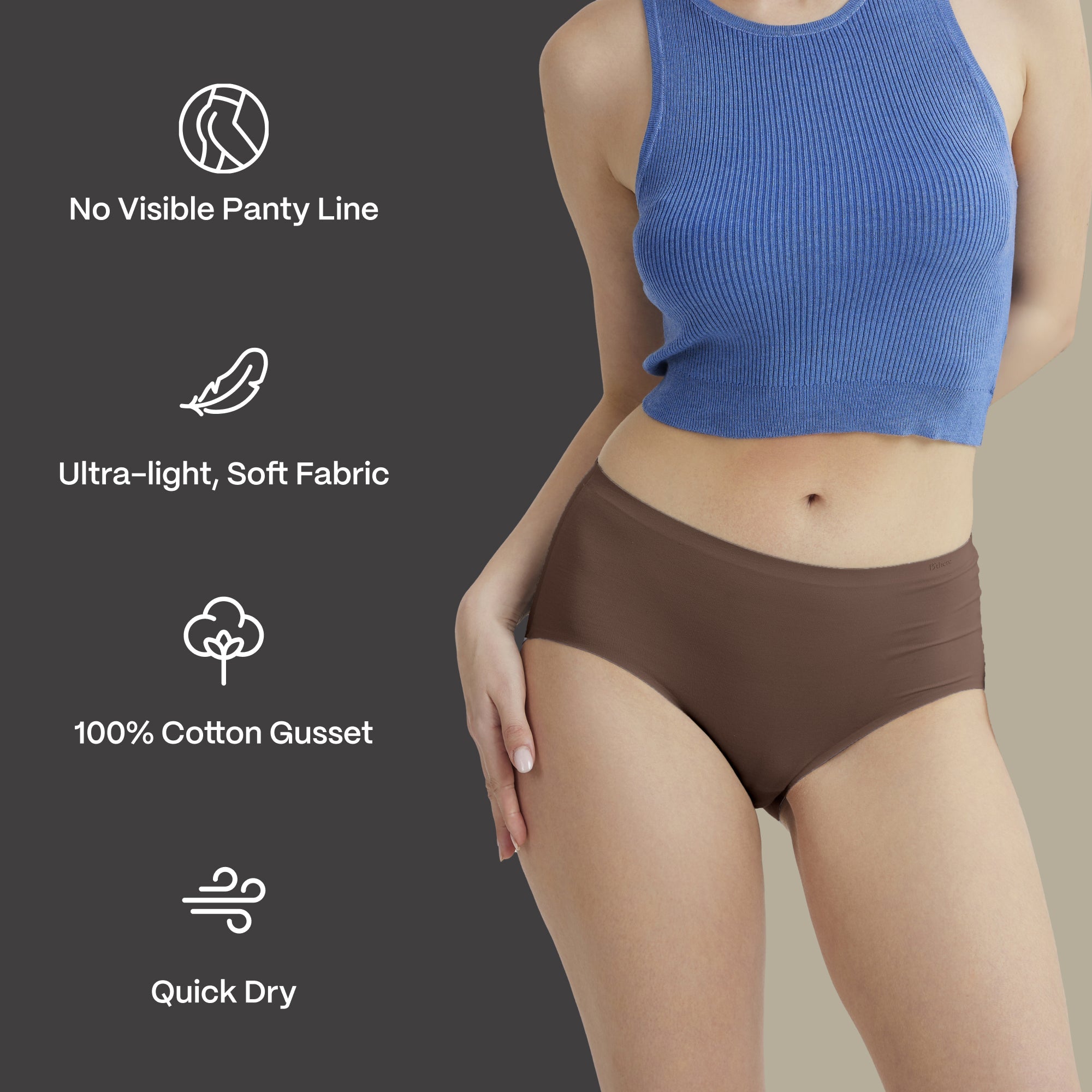 - An ultra-lightweight experience with our 60S modal fabric and bonded seams, designed for a seamless fit that won’t slip or slide.