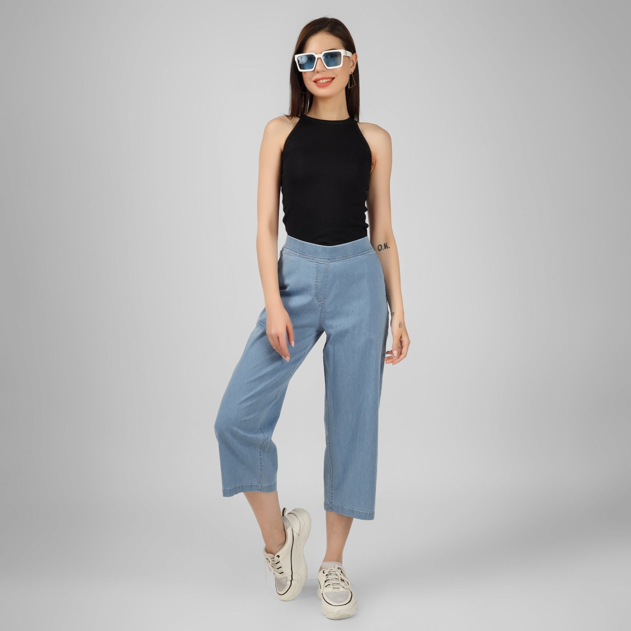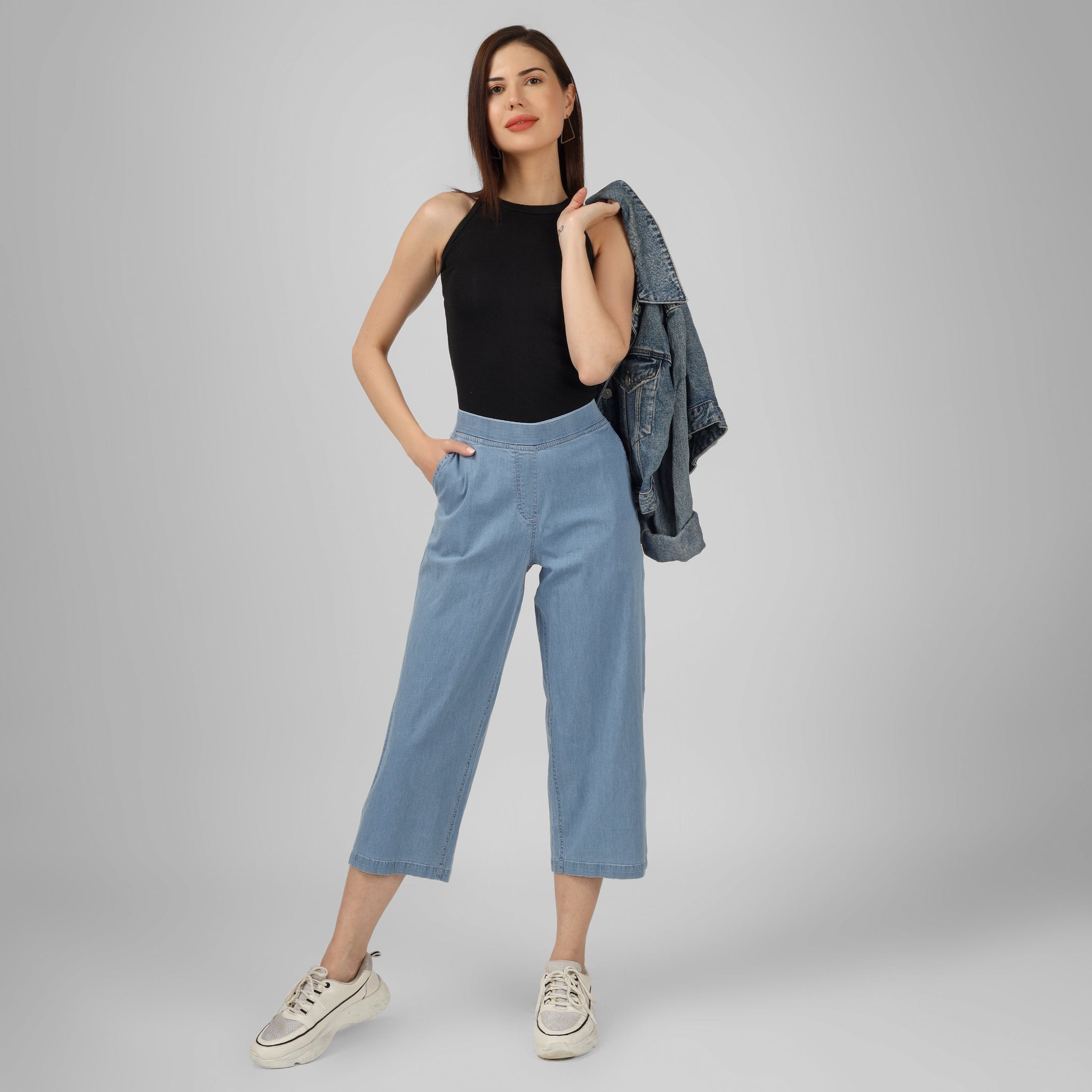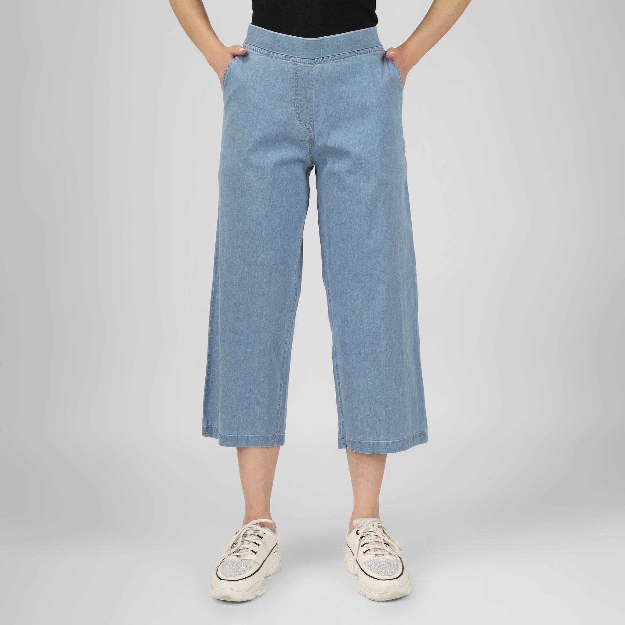Our denim flare pants are your go-to for all-day comfort and style. Available in dark and light blue, these denim flare pants offer a regular flare fit, making them the perfect flare jeans for women. Pair these flare denim jeans with any western wear for an effortlessly chic look.